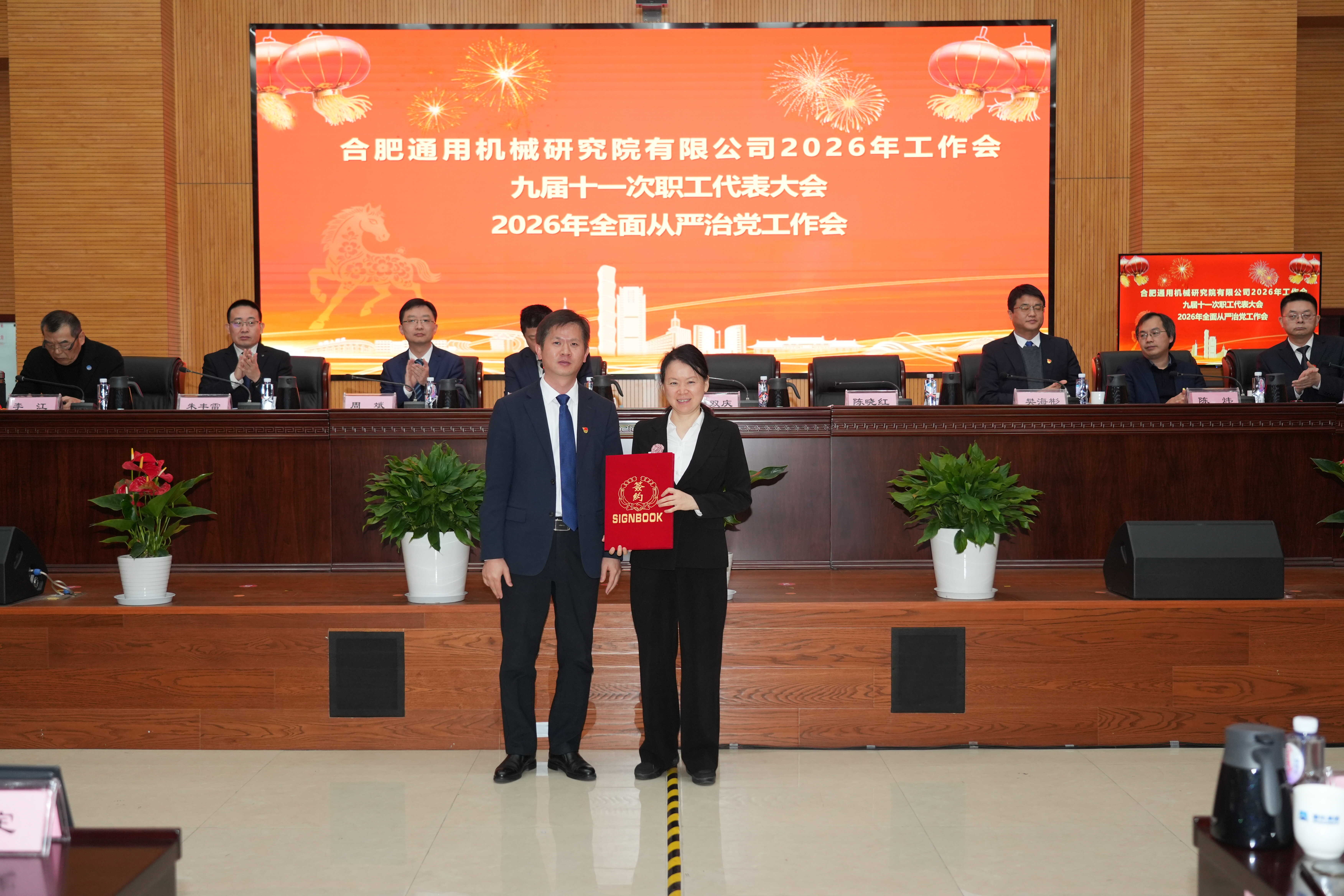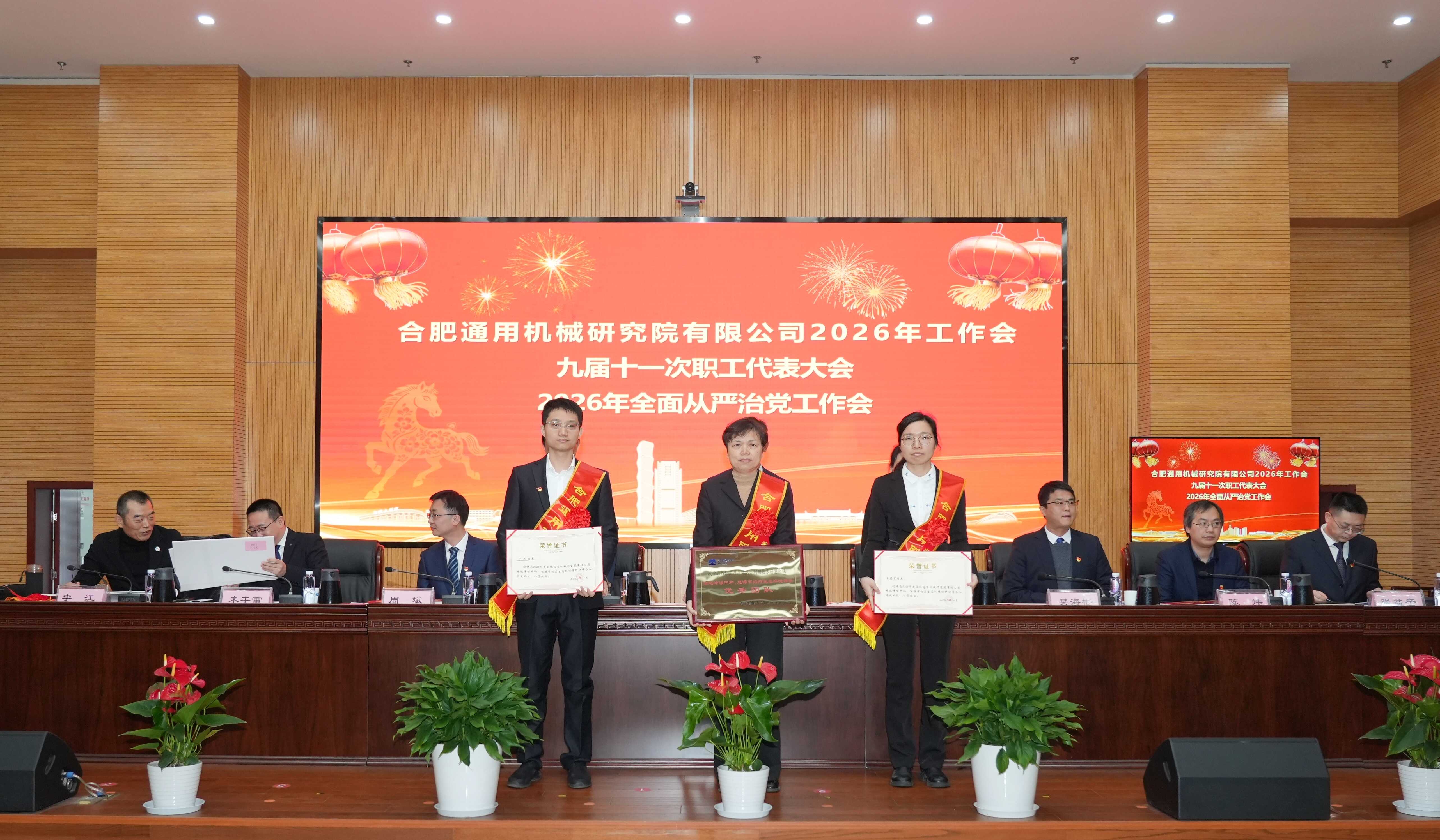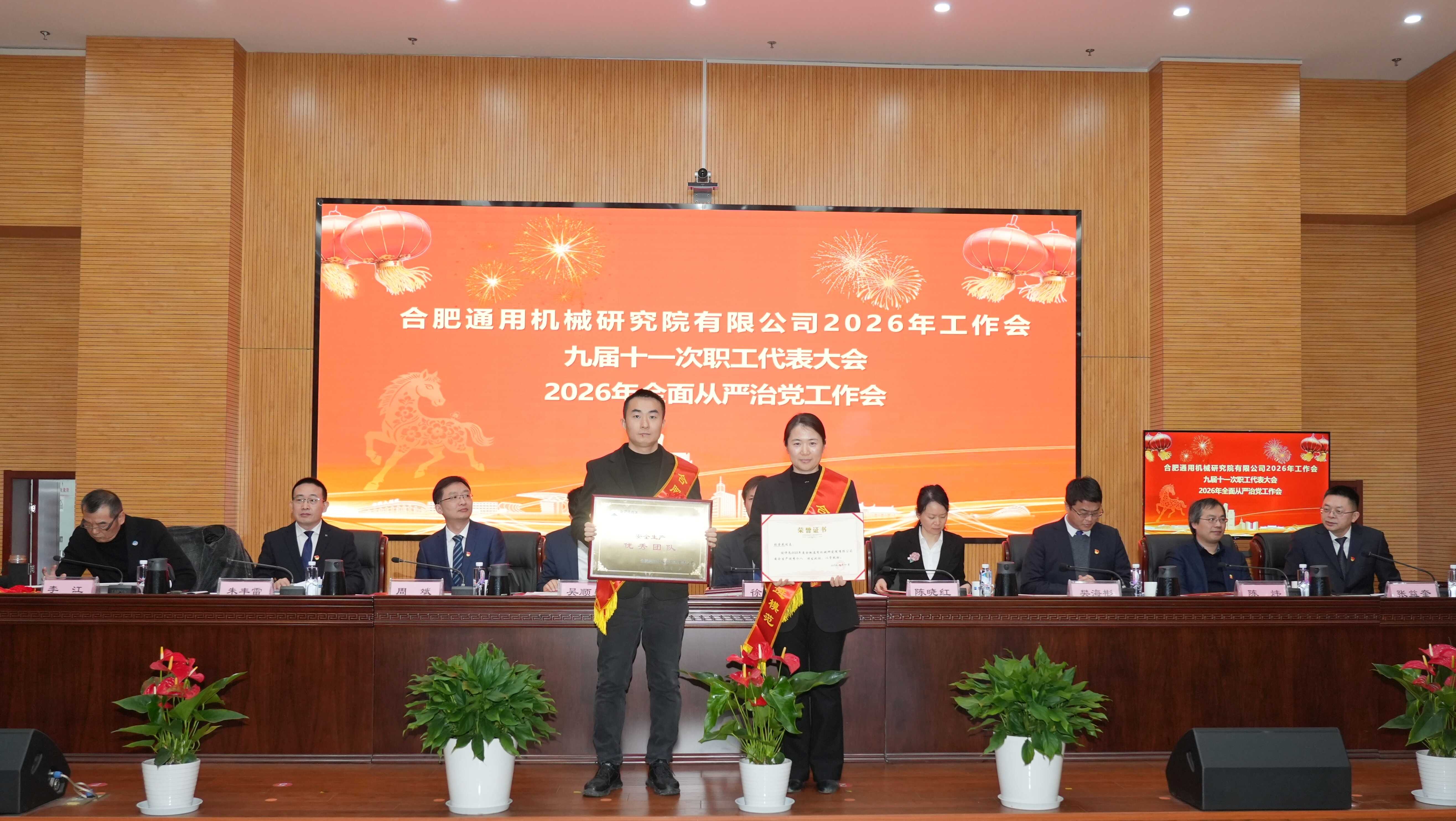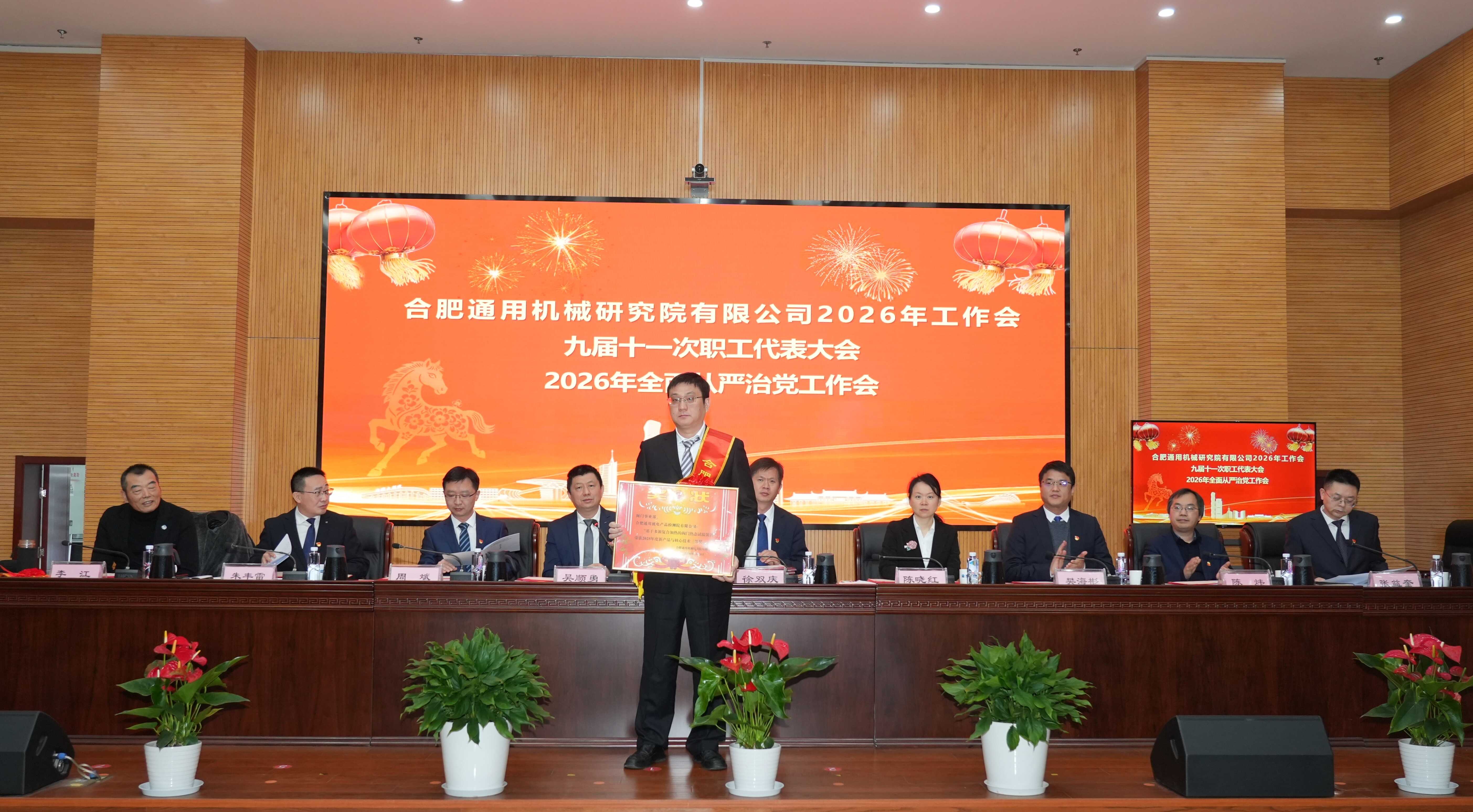 党委书记、董事长徐双庆作题为《聚势谋远惟实干 七秩砺行向百年 奋力实现合肥通用院“十五五”良好开局》的讲话。总经理陈晓红作题为《擘画新篇、勇攀高峰 奋楫扬帆书写合肥通用院“十五五”发展新华章》的工作报告。纪委书记周斌作题为《持续深化正风肃纪 巩固良好政治生态 坚定护航合肥通用院“十五五”高质量开局起步》的党风廉政建设和反腐败工作报告。财务总监张益奎作《2025年度财务工作报告》。党委副书记吴顺勇主持会议。外部董事以视频形式出席会议,院副总经理、党委委员、职工董事、总经理助理,院中层及以上干部、职工代表、离退休老领导老同志代表、基层党组织书记及委员、受表彰先进集体代表和先进个人等约200人参加会议。中通公司、上海工锅所、北京科正平等以视频形式参会。